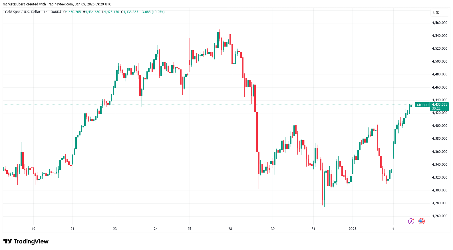 ارتفع زوج XAU/USD بنسبة 2% في وقت كتابة هذا التقرير يوم الاثنين، متجهًا نحو العودة إلى أعلى مستوياته على الإطلاق في ديسمبر عند 4,450 دولارًا للأونصة.