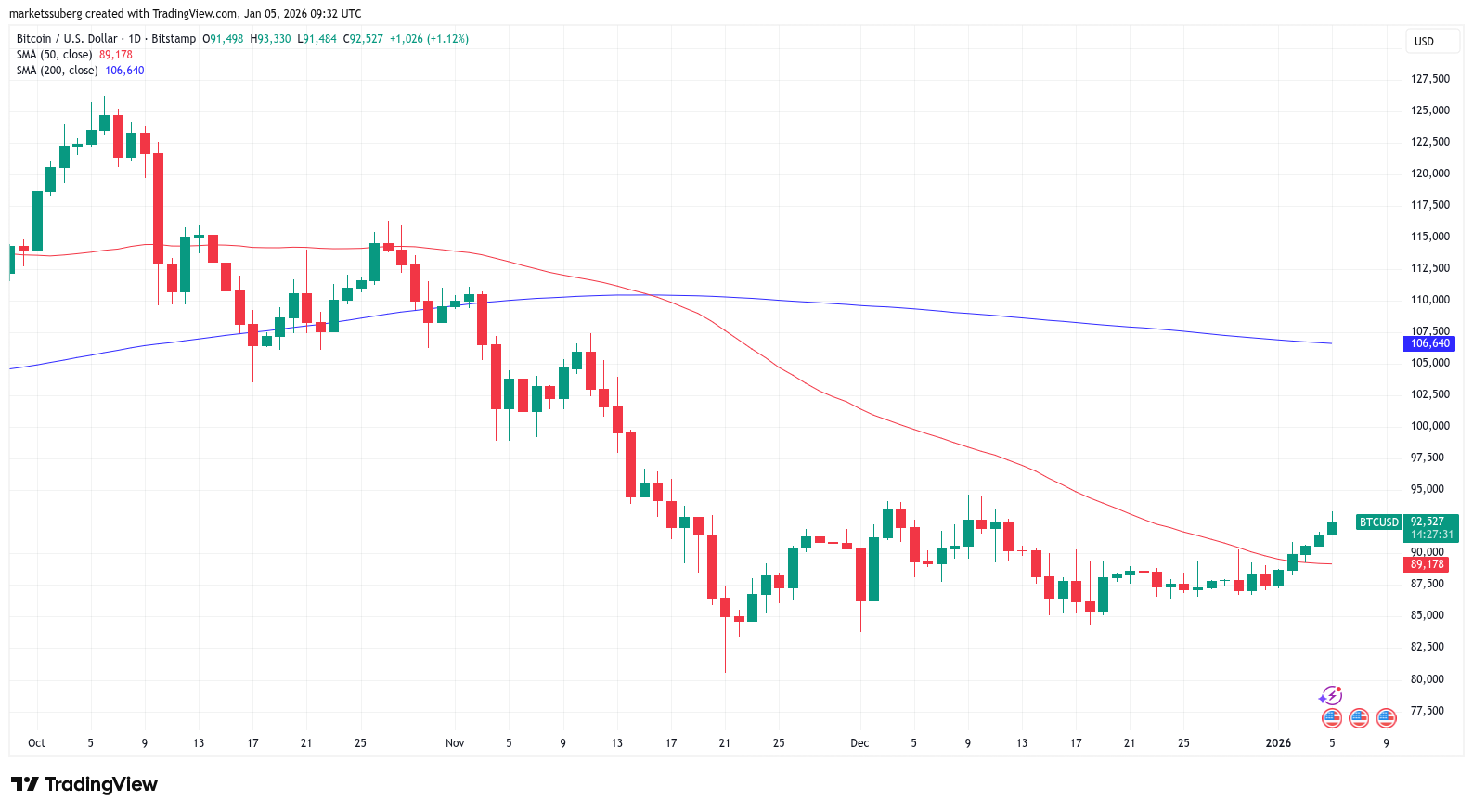 يحظى هذا السؤال ببعض الاهتمام الجاد من المتداولين والمعلقين، حيث وصل زوج BTC/USD إلى 93000 دولار للمرة الأولى منذ 11 ديسمبر.