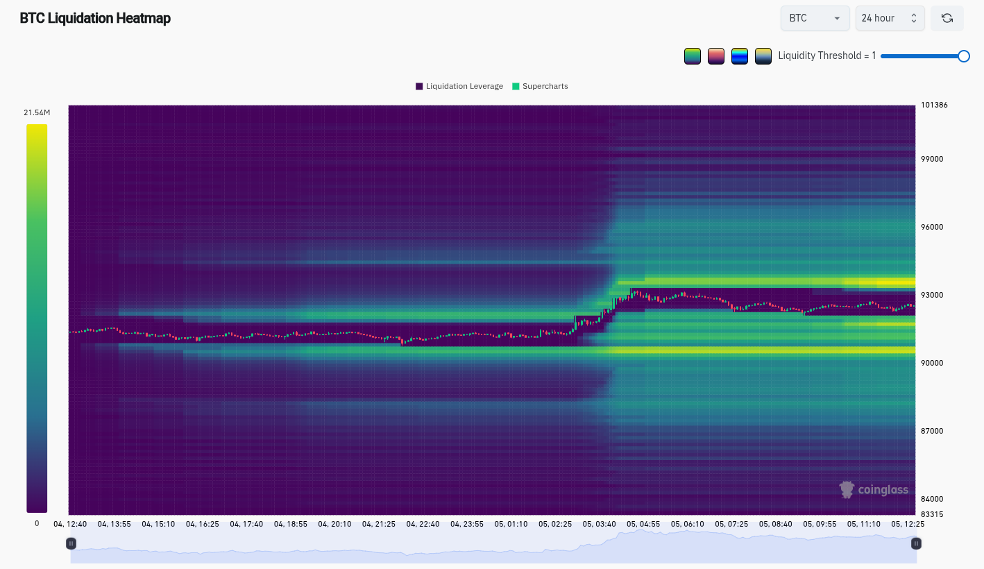 وفي الوقت نفسه، تشير أحدث البيانات من مورد مراقبة CoinGlass إلى أن عمليات التصفية القصيرة للعملات المشفرة على مدار 24 ساعة تبلغ 250 مليون دولار. تراكمت السيولة بشكل مرتفع حتى الإغلاق الأسبوعي، مع الهدف الصعودي التالي عند 93,700 دولار.
