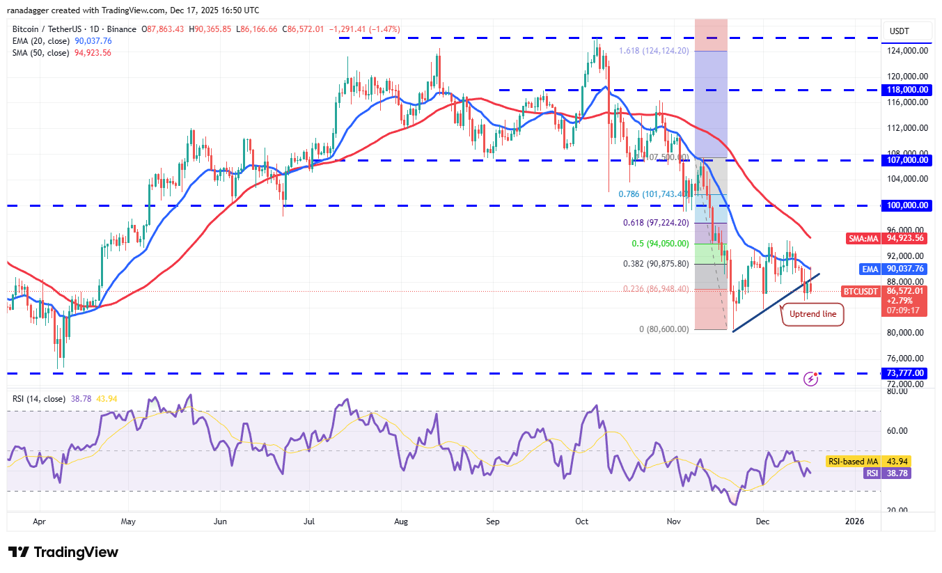 سيحاول المضاربون على الانخفاض سحب سعر البيتكوين إلى ما دون مستوى الدعم البالغ 84000 دولار. إذا تمكنوا من القيام بذلك، فيمكن لزوج BTC/USDT إعادة اختبار المستوى الحاسم عند 80600 دولار. من المتوقع أن يدافع المشترون بشدة عن منطقة 80,600 دولار إلى 73,777 دولارًا.