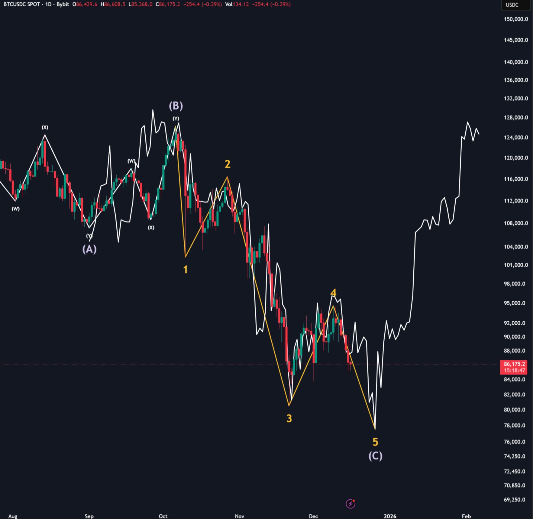 “الآن، سيكون الانخفاض التالي بسبب مبيعات التجزئة، وذلك عندما يبدأ الارتفاع. IMO، وهو تفريغ لاكتساح أدنى مستويات أبريل قبل الارتفاع فوق 100 ألف دولار في الربع الأول من عام 2026.”