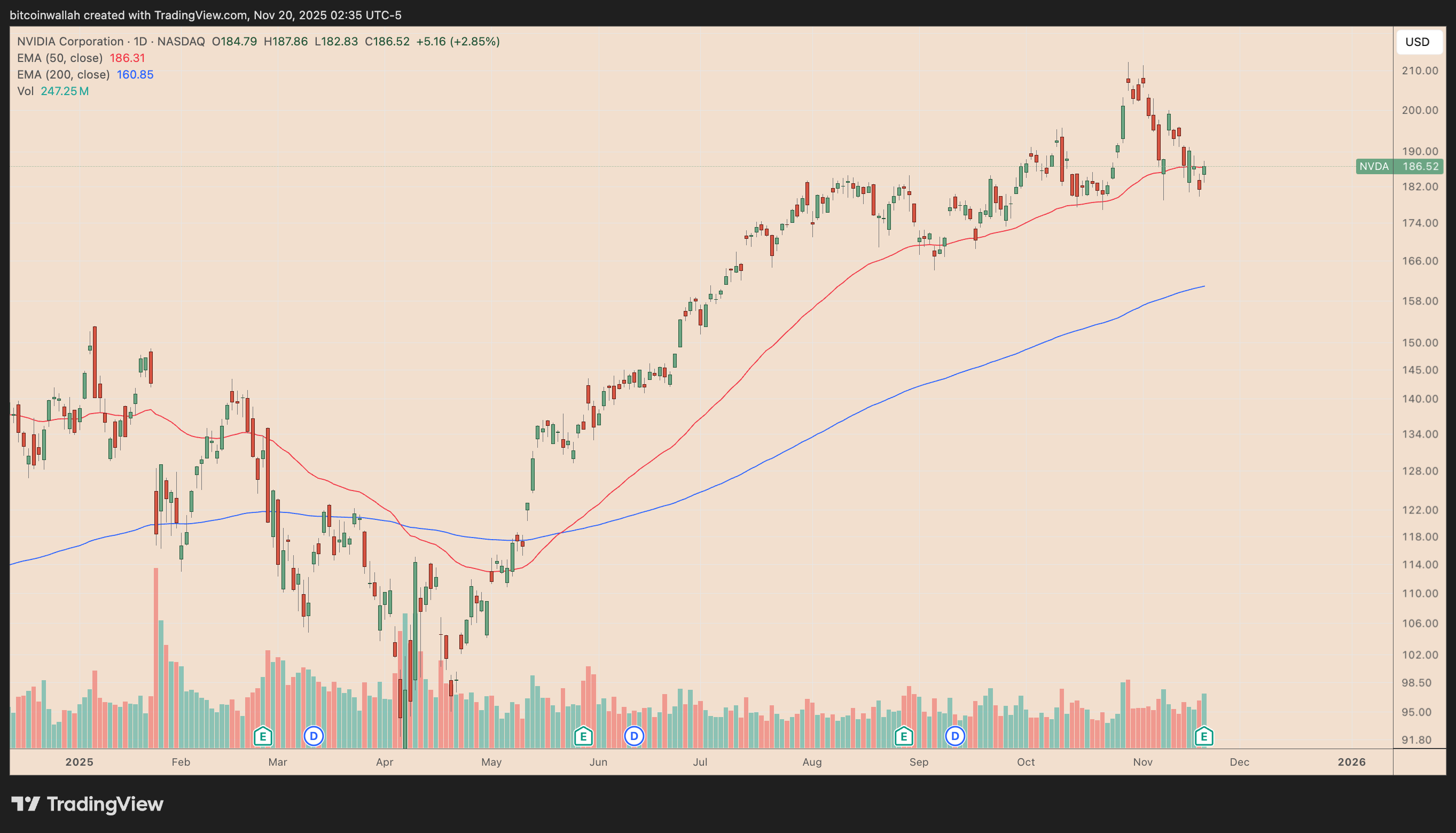 قفزت عملة البيتكوين (BTC) بعد أن ساعدت توقعات الإيرادات الأقوى من المتوقع لشركة Nvidia Corp على تهدئة المخاوف من فقاعة الذكاء الاصطناعي المحمومة، لكن المكاسب انعكست بسرعة حيث تخلى مؤشر داو جونز عن ارتفاع قدره 700 نقطة ليتحول إلى السلبية وبيعت الأسهم الأمريكية. انخفضت عملة البيتكوين إلى أدنى مستوى شهري جديد عند 86400 دولار، وتشير البيانات إلى أن المزيد من الانخفاض قد يكون في الطريق.