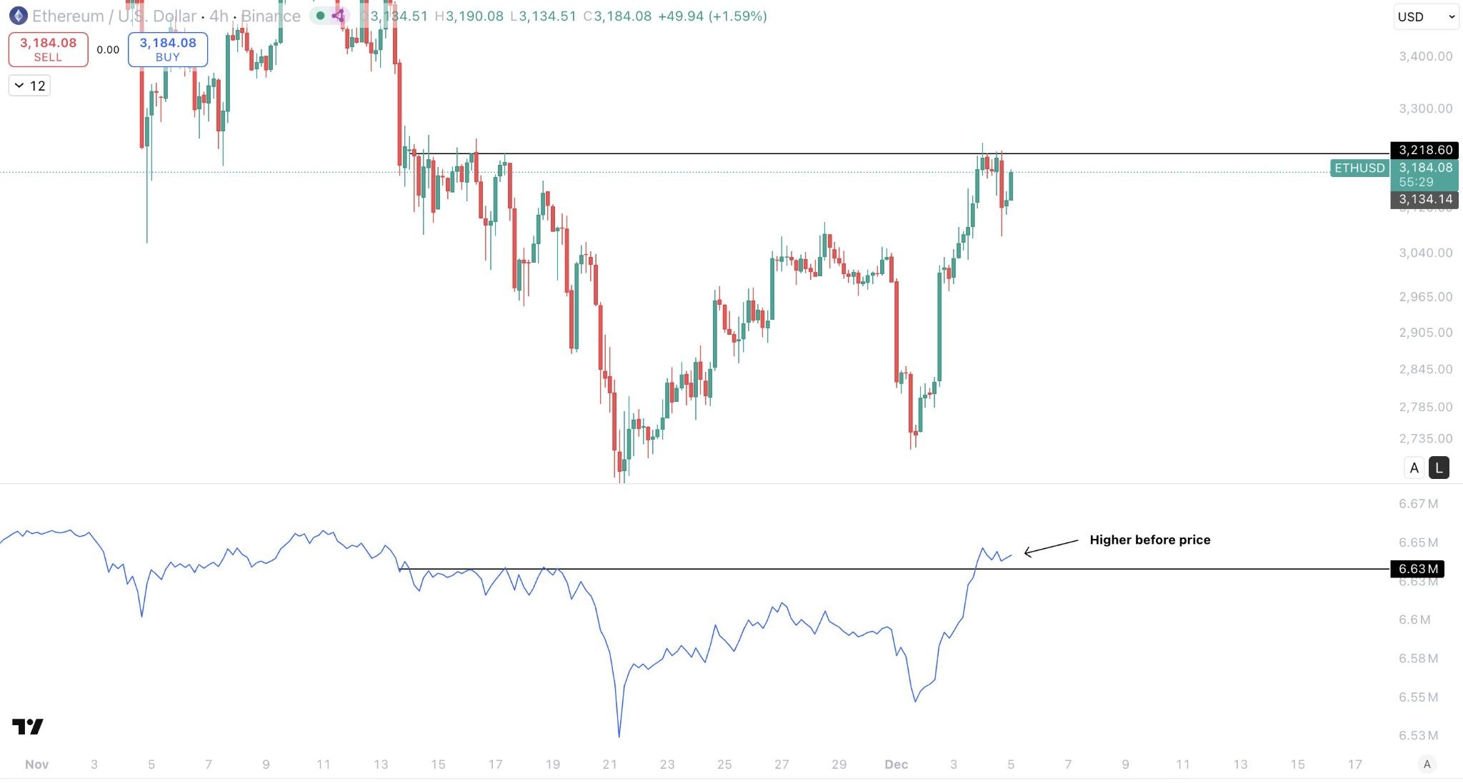 استقرت أسعار الأثير في الغالب فوق 3000 دولار خلال الأيام الخمسة الماضية، لكنها لم تتمكن من كسر المقاومة عند 3200 دولار.
