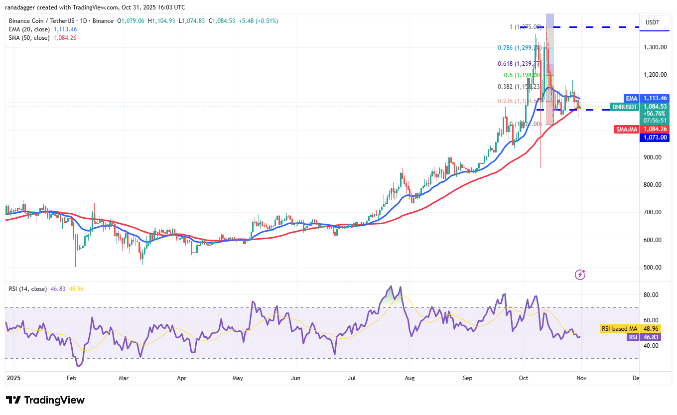 يشهد BNB (BNB) معركة صعبة بين المضاربين على الصعود والمضاربين على الانخفاض عند المتوسط المتحرك البسيط لمدة 50 يومًا (1,084 دولارًا).