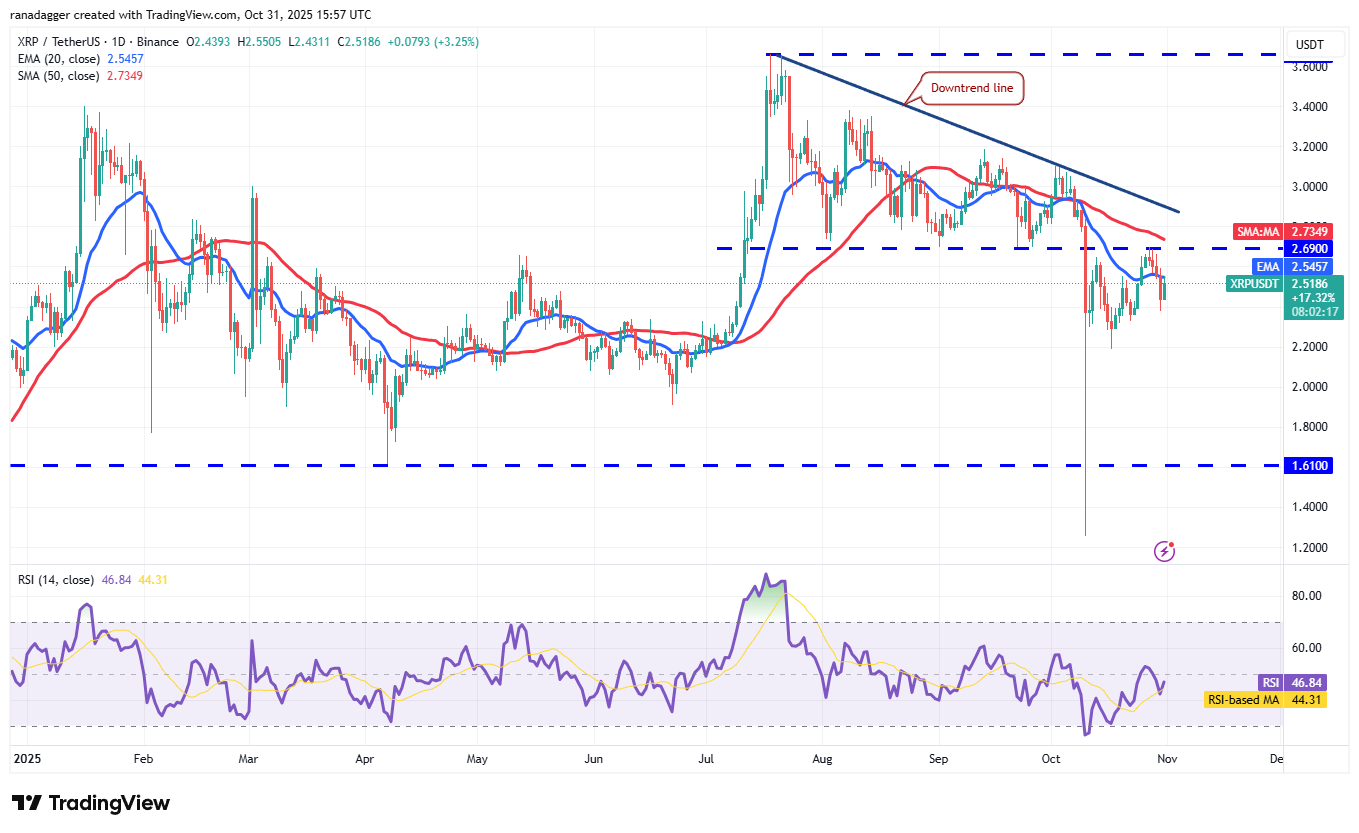انخفض XRP (XRP) إلى ما دون المتوسط المتحرك الأسي البالغ 20 يومًا (2.54 دولارًا) يوم الخميس، مما يشير إلى أن الدببة يحاولون الاحتفاظ بالميزة.
