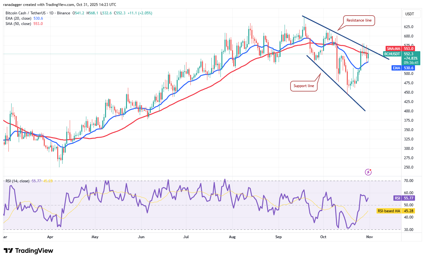 ظلت Bitcoin Cash (BCH) عالقة بين المتوسط المتحرك الأسي لمدة 20 يومًا (530 دولارًا) وخط المقاومة خلال الأيام القليلة الماضية.