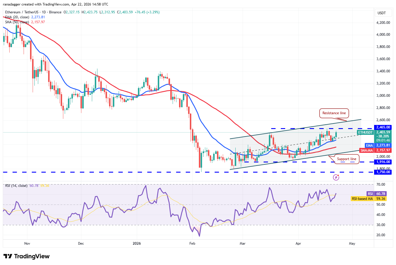 انتعشت إيثريوم (ETH) من المتوسط المتحرك الأسي البالغ ٢٠ يومًا (٢٢٧٣ دولارًا) يوم الاثنين، مما يشير إلى تغير في المعنويات من البيع عند الارتفاعات إلى الشراء عند الانخفاضات.