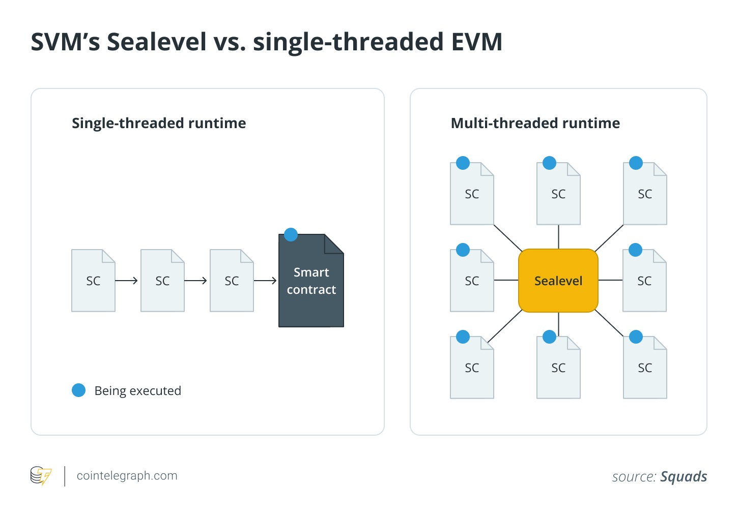 يقدم SVM التوازي الحتمي في المشهد التراكمي لـ Ethereum. بدلاً من التنافس على نفس قائمة الانتظار العالمية، يمكن للتطبيقات العمل في مسارات منفصلة. ويؤثر هذا على التحكم في الازدحام وأسواق الرسوم وكيفية قياس الأداء على مستوى النظام في فترات النشاط المرتفع.