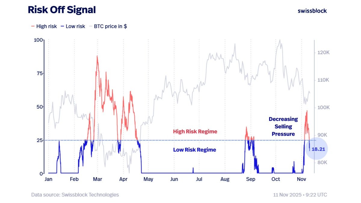 قال مدير الثروات الخاص سويس بلوك في أحدث تحليل له لبيتكوين: “لقد تحولت إشارة النفور من المخاطرة مرة أخرى إلى نظام منخفض المخاطر، مما يدل على أن ضغط البيع يتراجع مع تعافي بيتكوين”، مضيفًا: