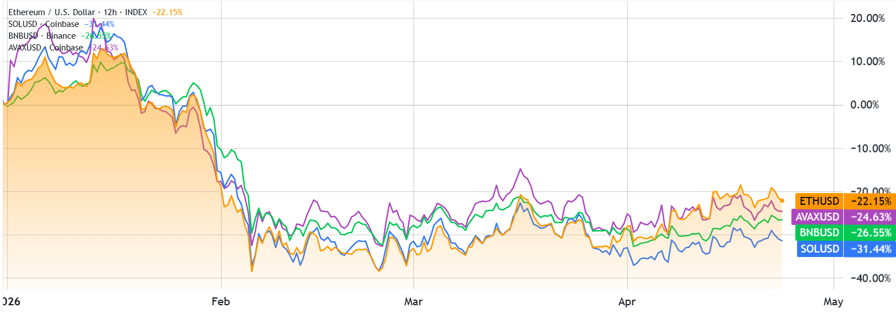 ETH مقابل BNB، SOL، AVAX. مصدر: TradingView