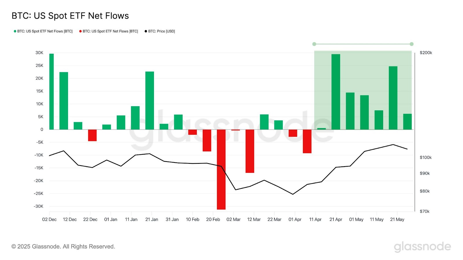 ذكرت Glassnode أن تدفق الأسبوع الماضي لأكثر من 6100 BTC يمثل الأسبوع السابع على التوالي من التدفقات الصافية ، “تسليط الضوء على الطلب المتسق على الرغم من زخم التبريد”.