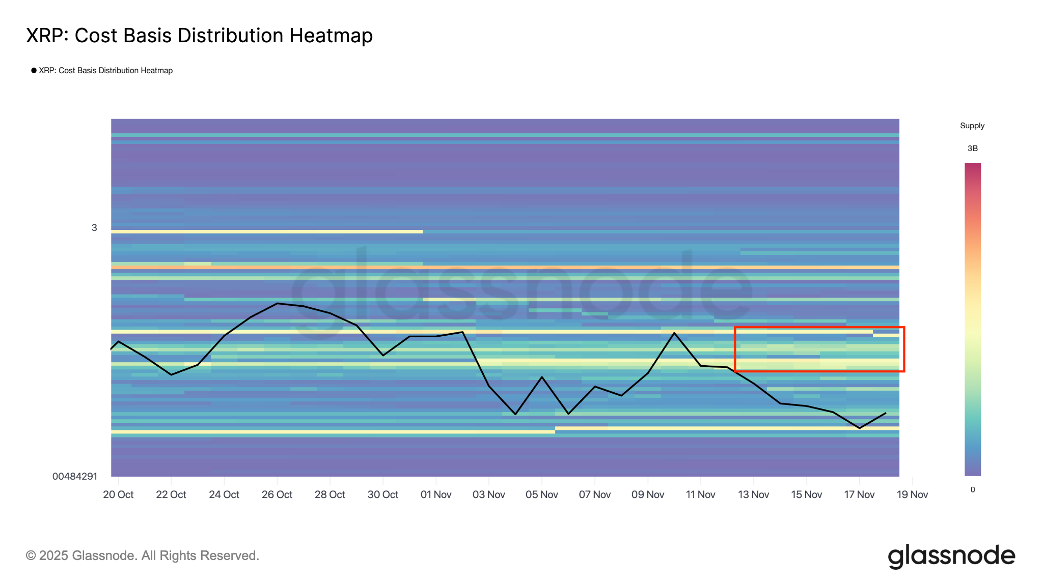 تُظهر الخريطة الحرارية لتوزيع Glassnode أن مجموعة كبيرة من العرض تقع بين 2.38 دولارًا و2.40 دولارًا (يحتضنها المتوسط المتحرك البسيط لـ 100 يوم وخط مقاومة المثلث)، حيث تم الحصول على ما يقرب من 3.23 مليار XRP. يمثل هذا منطقة مقاومة شديدة لـ XRP، مما يزيد من الرياح الخلفية.