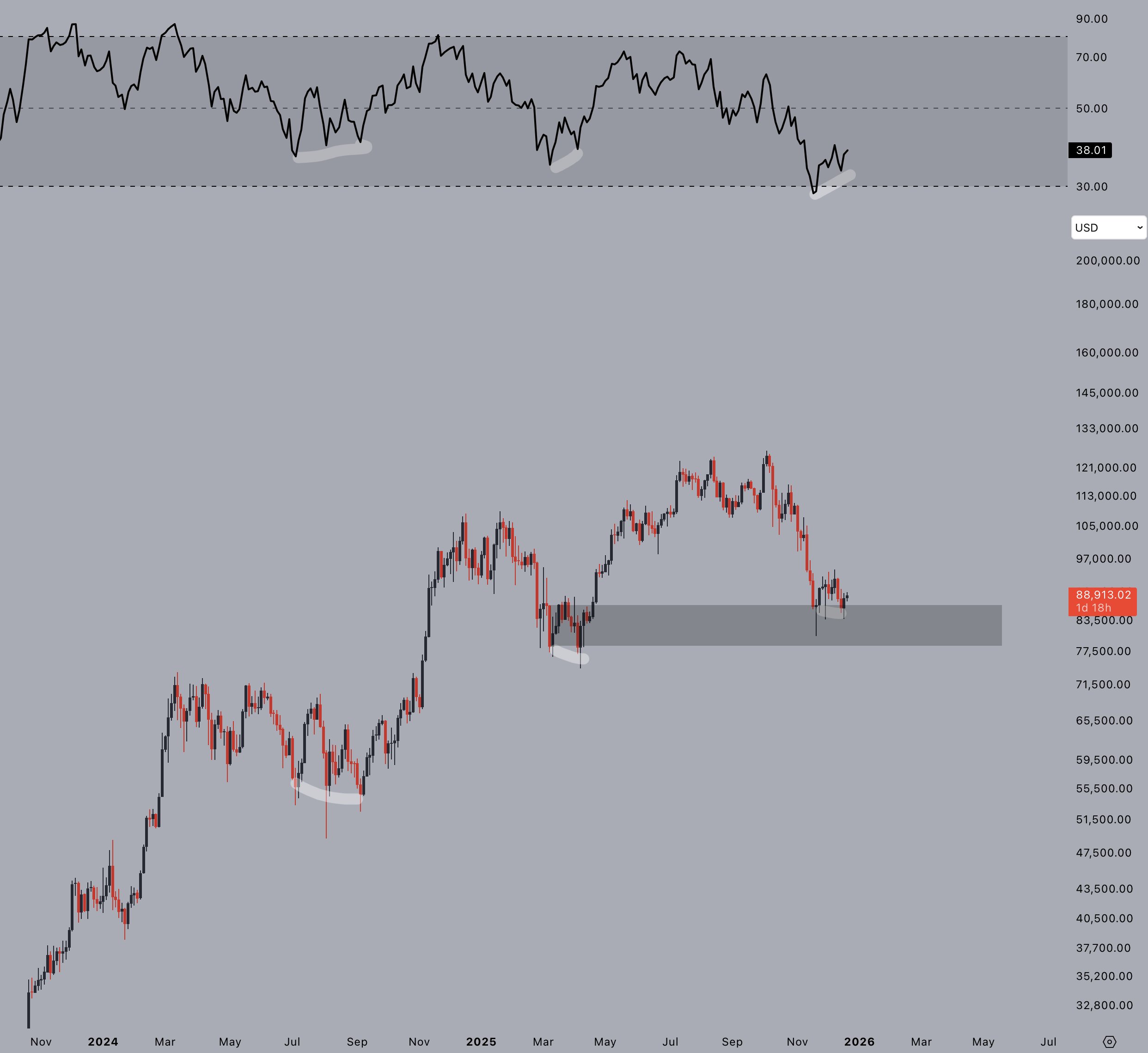 قد تنشئ عملة البيتكوين (BTC) قاعًا محليًا بعد انخفاضها بأكثر من 35٪ من أعلى مستوى قياسي لها عند حوالي 126200 دولار والذي تم تسجيله قبل شهرين، بناءً على مزيج من المؤشرات الفنية والمتعلقة بالسلسلة.