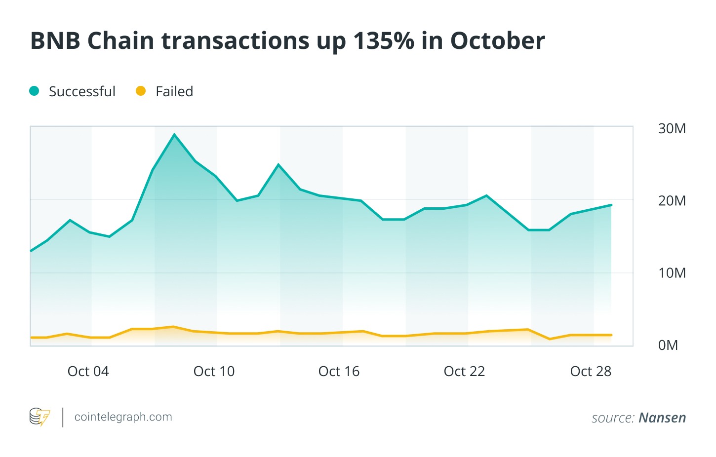 ارتفعت معاملات سلسلة BNB بنسبة 135% في أكتوبر