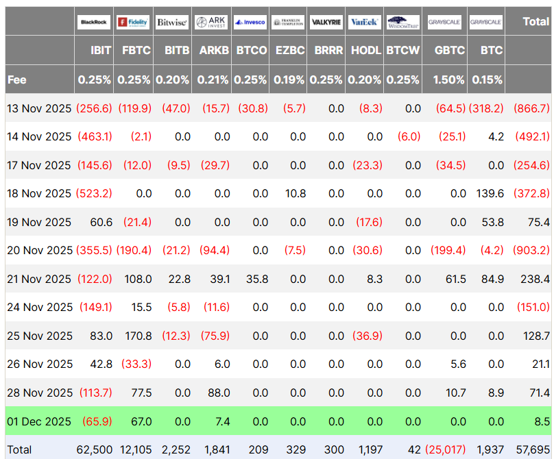 أضافت صناديق الاستثمار المتداولة للبيتكوين المتداولة في الولايات المتحدة، وهي أحد المحركات الرئيسية لزخم البيتكوين في عام 2025، ضغوطًا هبوطية كبيرة في نوفمبر، مما أدى إلى زيادة صافي التدفقات الخارجية السلبية بمقدار 3.48 مليار دولار في ثاني أسوأ شهر على الإطلاق، وفقًا لشركة Farside Investors.