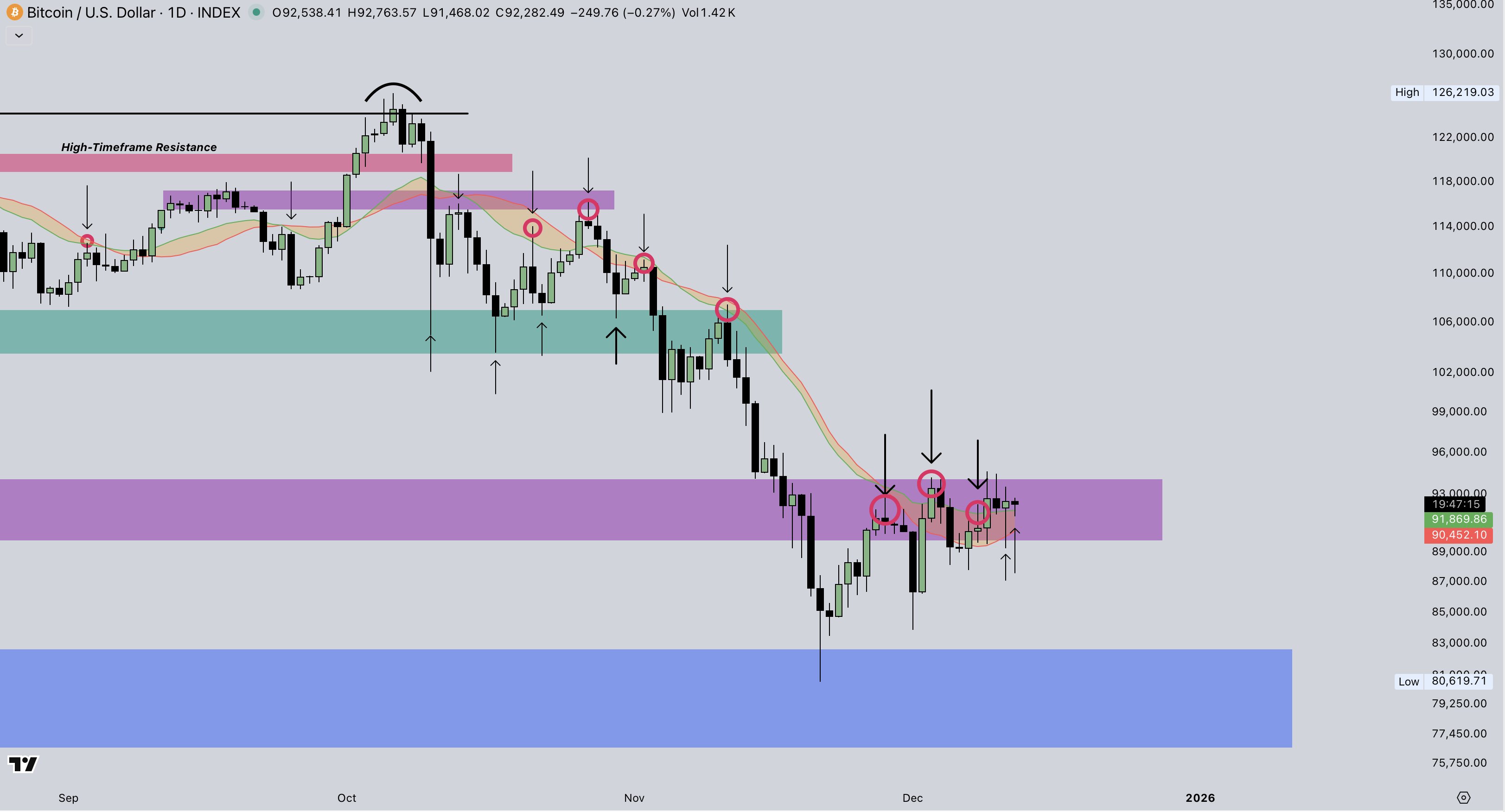 طوال معظم عام 2025، حذر رومان من انهيار وشيك للسوق الصاعدة، مع إعطاء مؤشر القوة النسبية على وجه الخصوص إشارات هبوطية على أطر زمنية أطول.