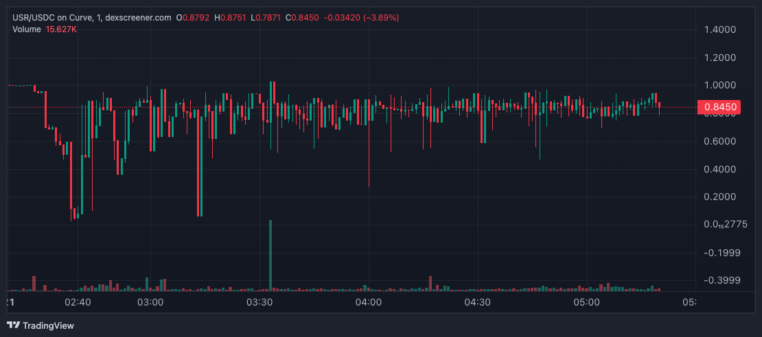 يتم تداول USR حاليًا بحوالي 87 سنتًا، أي حوالي 13٪ خصمًا من سعر الربط البالغ دولار واحد الذي يهدف الرمز المميز إلى الحفاظ عليه، وفقًا لـ CoinGecko.
