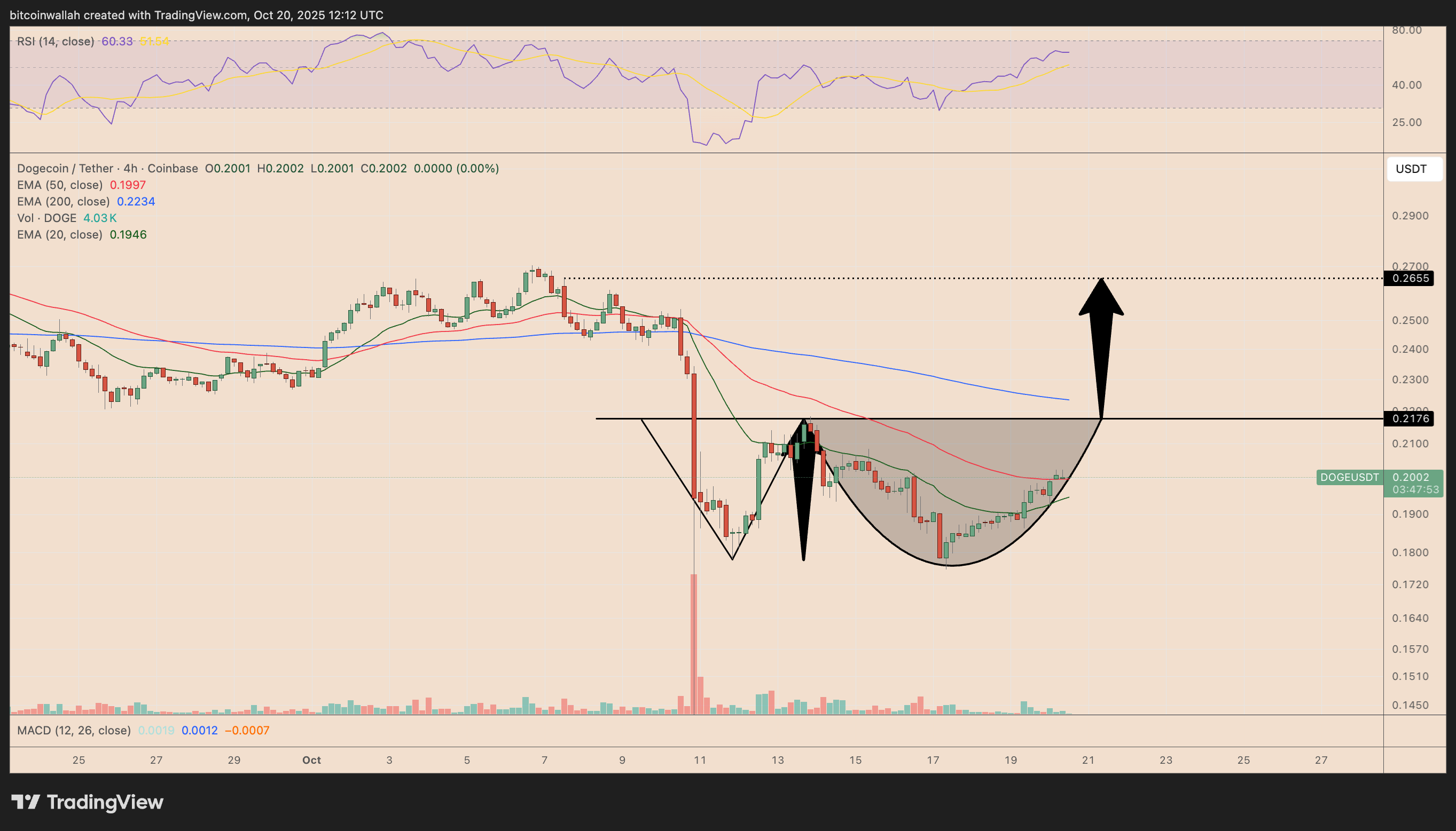 يقع خط عنق DOGE بالقرب من 0.216 دولار، وقد يؤدي الاختراق المؤكد فوق هذا المستوى إلى التحرك نحو 0.260 دولار، أي أعلى بنسبة 25٪ تقريبًا من الأسعار الحالية.