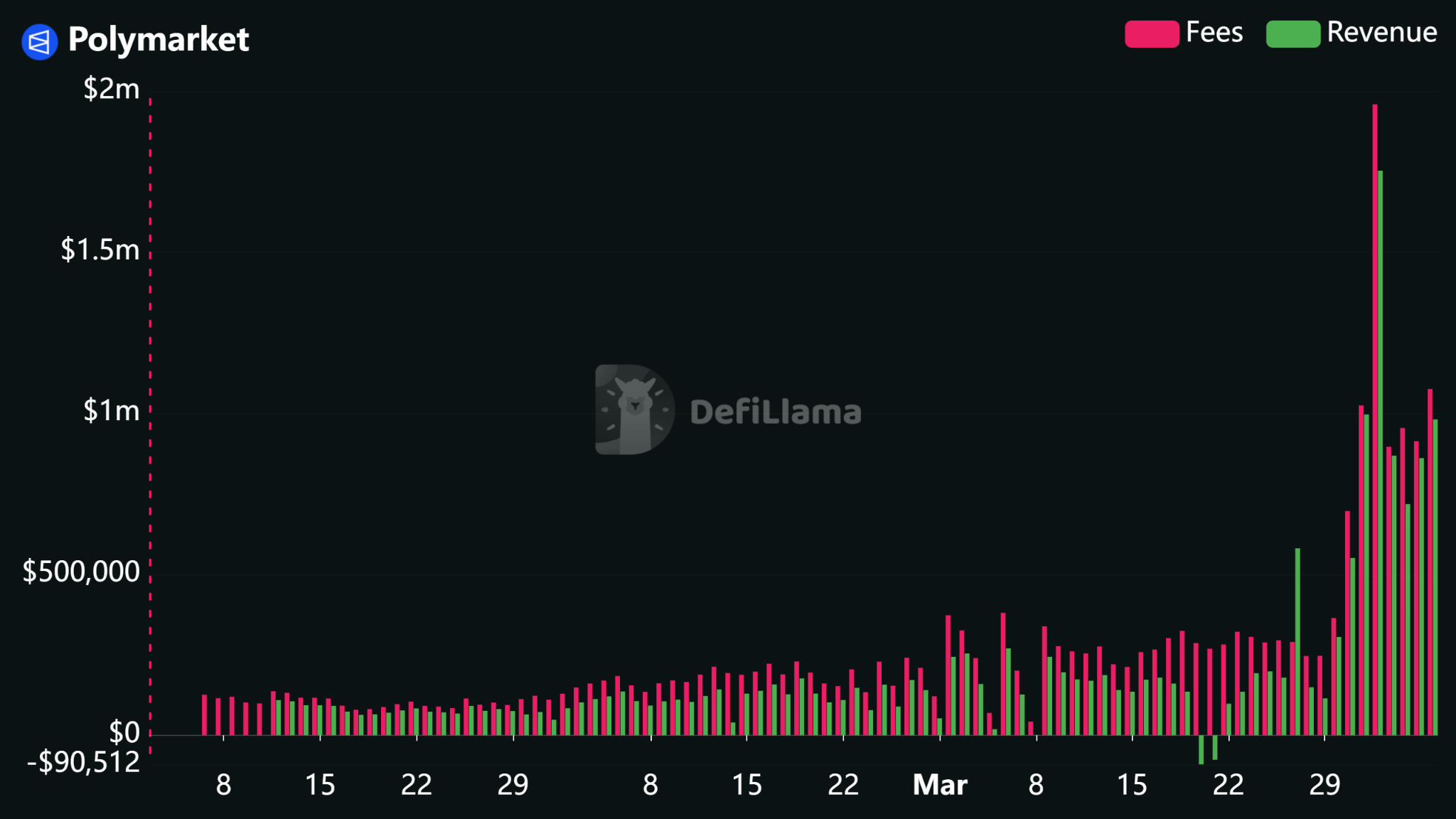 استمر الاهتمام بأسواق التنبؤ في النمو، مع تحول المستخدمين بشكل متزايد إلى هذه المنصات للتداول على نتائج العالم الحقيقي المرتبطة بالسياسة والأسواق والسياسة. تُظهر بيانات الصناعة زيادة إيرادات رسوم Polymarket في الأسابيع الأخيرة بعد أن قامت المنصة بتوسيع رسوم التداول.