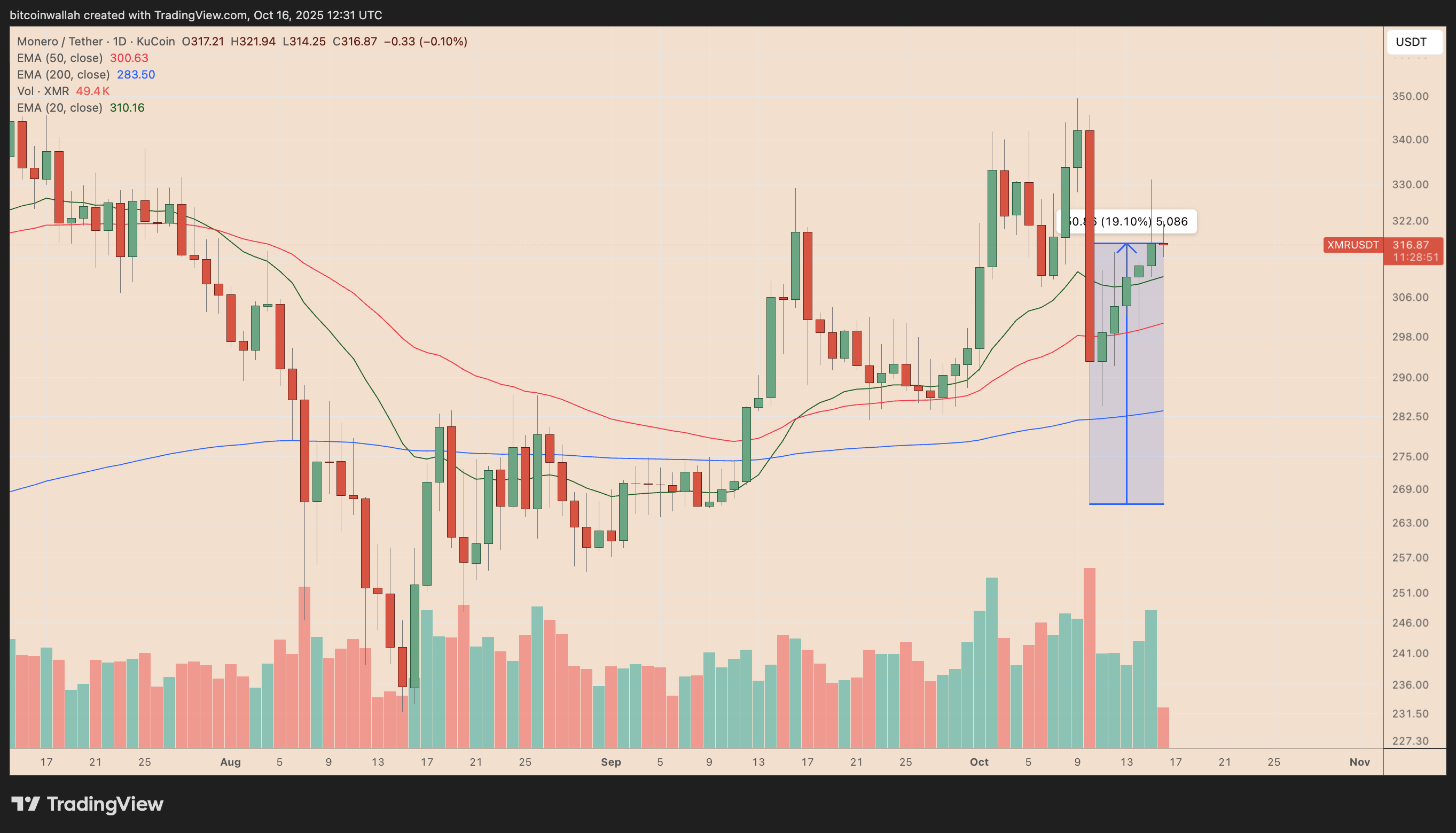 فقدت Monero (XMR)، عملة الخصوصية الرائدة من حيث القيمة السوقية، مثل هذه الارتفاعات الحادة. ولا تزال محذوفة أو مقيدة في معظم البورصات الرئيسية، بما في ذلك Binance وOKX، بالإضافة إلى العديد من منصات التداول الأوروبية، بسبب تصميمها غير الشفاف.