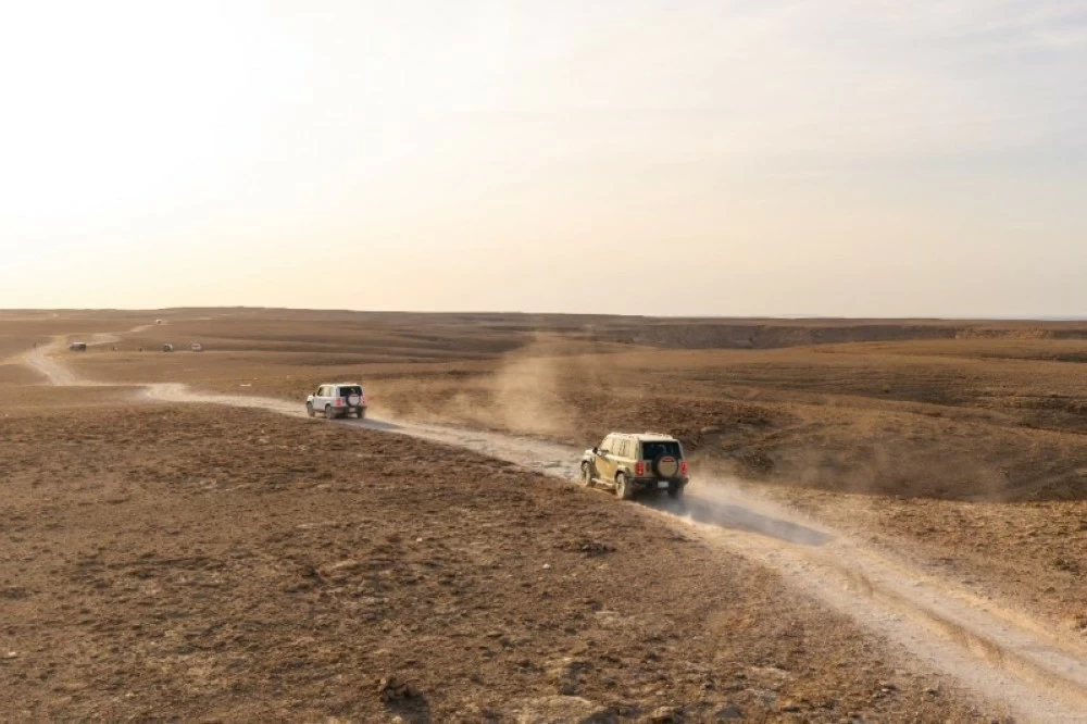 It is worth noting that the Edge of the World is located north of the Tuwaiq Mountains, which extend for about 1,000 kilometers, and it is a cliff rising nearly 300 meters high, considered one of the most prominent natural landmarks in Saudi Arabia. The road to it is a real challenge, as it passes through vast plains lacking communication networks and signboards, with traces of soft tire tracks and grooves formed by rainwater.