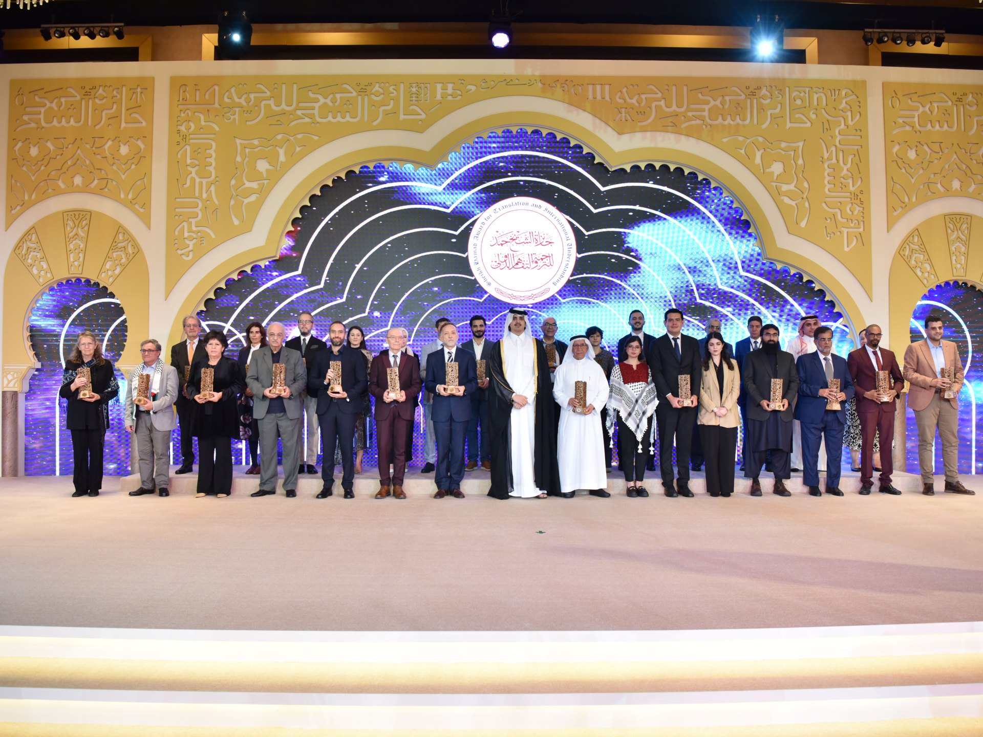 توّج الشيخ ثاني بن حمد آل ثاني الفائزين بجائزة الشيخ حمد للترجمة والتفاهم الدولي في دورتها التاسعة لعام 2023، في حفل أقيم عقب المؤتمر الدولي العاشر حول الترجمة وإشكالات المثاقفة، الذي نظمه منتدى العلاقات العربية والدولية على مدار يومين بمشاركة 120 من الباحثين والمترجمين والأكاديميين من أنحاء العالم.
