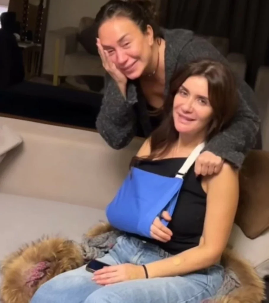ونشرت إنجي صورة تجمعها بغادة عادل، التي ظهرت وذراعها موضوعة في جبيرة معلقة على صدرها، وعلّقت عليها قائلة: «اللعب مع الكلاب».