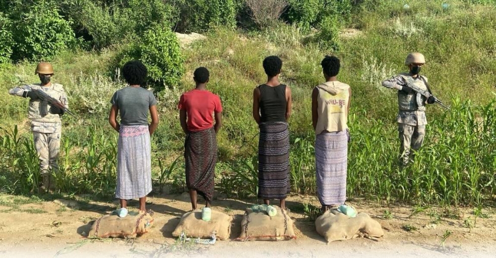 قبضت الدوريات البرية لحرس الحدود في قطاع العارضة بمنطقة جازان على أربعة مخالفين لنظام أمن الحدود من الجنسية الإثيوبية، لمحاولتهم تهريب 80 كيلوغراماً من نبات القات المخدر، وجرى استكمال الإجراءات النظامية الأولية بحقهم، وتسليمهم والمضبوطات لجهة الاختصاص.