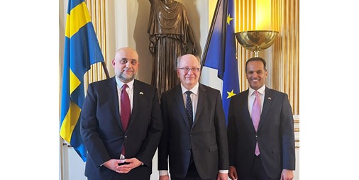 بحث سفيرنا لدى مملكة السويد محمد حياتي مع وزير الدولة للشؤون الخارجية السويدي داغ هارتيليوس العلاقات الثنائية المتميزة بين البلدين التي تشهد هذا العام مرور 60 عاما على إقامتها وعددا من القضايا الإقليمية والدولية ذات الاهتمام المشترك.