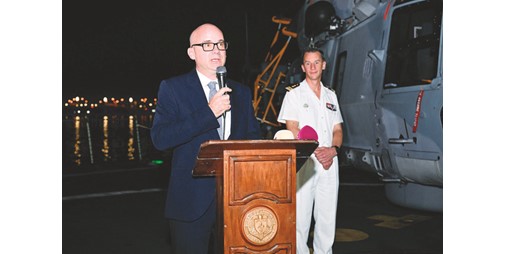 جاء ذلك في كلمة ألقاها السفير غوفان خلال حفل استقبال أقيم على متن الفرقاطة الفرنسية متعددة المهام (لا بروفانس) بمناسبة رسوها في ميناء الشويخ في زيارة تعكس عمق التعاون الدفاعي حضره وكيل وزارة الدفاع الشيخ د.عبدالله المشعل، ومساعد وزير الخارجية لشؤون أوروبا السفير صادق معرفي، وآمر القوة البحرية بالجيش الكويتي اللواء الركن بحري سيف الهملان. وقال السفير غوفان إن عمق علاقات الصداقة الفرنسية ـ الكويتية تجسد بالزيارة الرسمية التي قام بها صاحب السمو الأمير الشيخ مشعل الأحمد إلى فرنسا في شهر يوليو الماضي وحضور سموه العرض العسكري الذي أقيم بمناسبة العيد الوطني لفرنسا (يوم الباستيل) إلى جانب رئيس الجمهورية إيمانويل ماكرون.