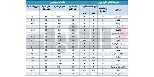 مادة ثالثة: يصرف دعم الإنتاج النباتي على 4 فترات زراعية خلال السنة المالية على النحو التالي: