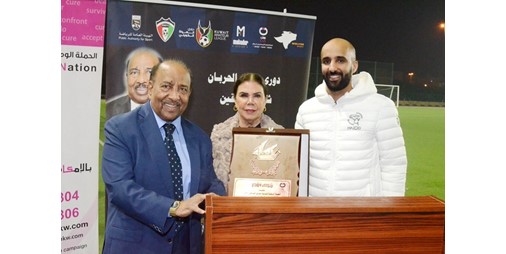 من جهته، أعرب شيخ المعلقين خالد الحربان عن امتنانه لرعاية هذا الدوري الذي يشجع على شغل أوقات الشباب بعمل مفيد يعود على صحتهم بالنفع والفائدة، فضلا عن رسائل التوعية التي يبثها حول الأمراض السرطانية.