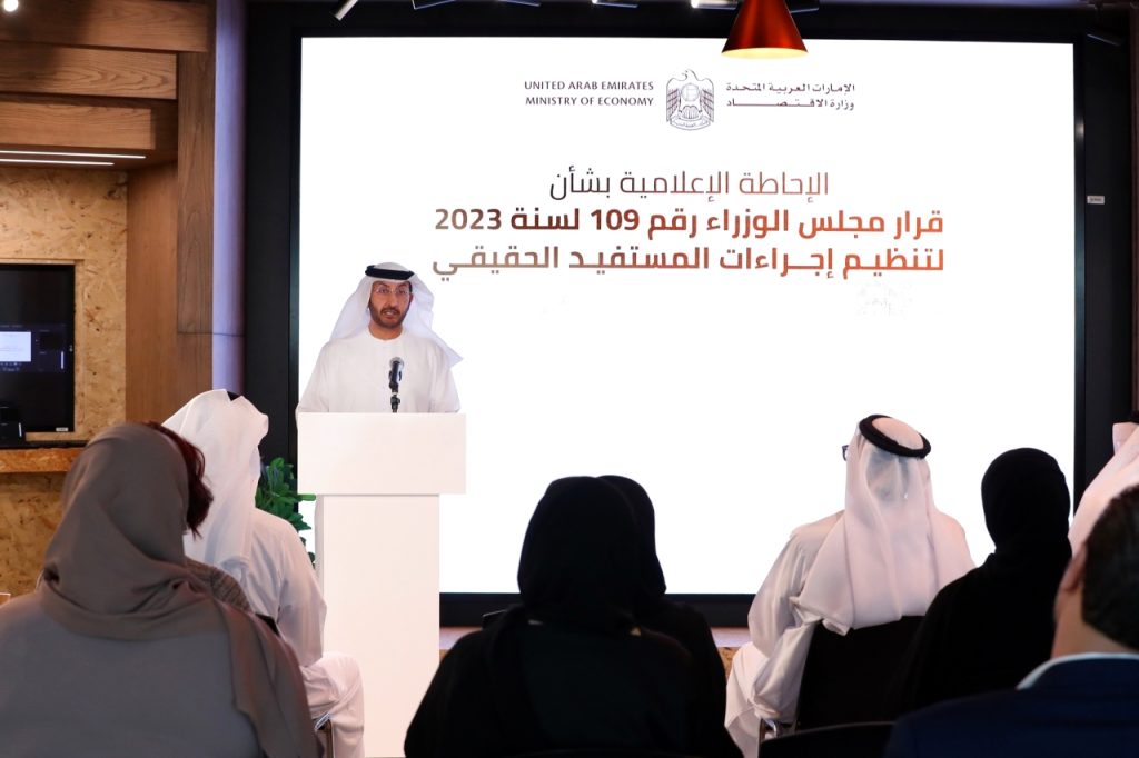 استعرضت وزارة الاقتصاد أبرز المستجدات الخاصة بتطوير منظومة مواجهة غسل الأموال ومكافحة تمويل الإرهاب في الدولة، والمتمثلة في قرار مجلس الوزراء رقم (109) لسنة 2023 في شأن تنظيم إجراءات المستفيد الحقيقي، وقرار مجلس الوزراء بشأن الجزاءات الإدارية المترتبة على مخالفي أحكام قرار مجلس الوزراء رقم (109) لسنة 2023 في شأن تنظيم إجراءات المستفيد الحقيقي، واللذين يستهدفان دعم تنافسية بيئة الأعمال الوطنية وتعزيز المكانة الاقتصادية لدولة الإمارات إقليمياً وعالمياً.