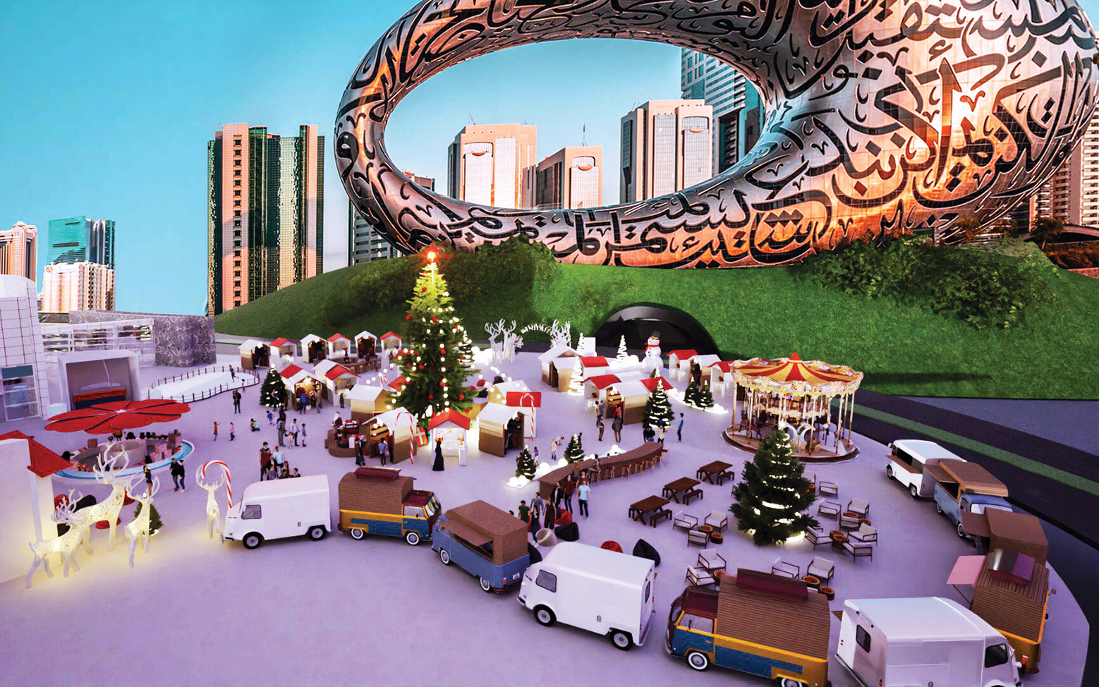 سيحول هذا الحدث تيراس بلازا جميرا أبراج الإمارات إلى أرض عجائب شتوية مكتملة بشجرة عيد ميلاد عملاقة، ورجال ثلج ضخم، وأضواء احتفالية، مما يوفر تجربة مثالية ولحظات من العمر على إطلالة متحف المستقبل، ولإضفاء الشعور بالدفء والرضا على قلوب الزوار والضيوف ستقدم مجموعة مختارة من شاحنات الطعام طيفاً من الوجبات الخفيفة والمشروبات اللذيذة.