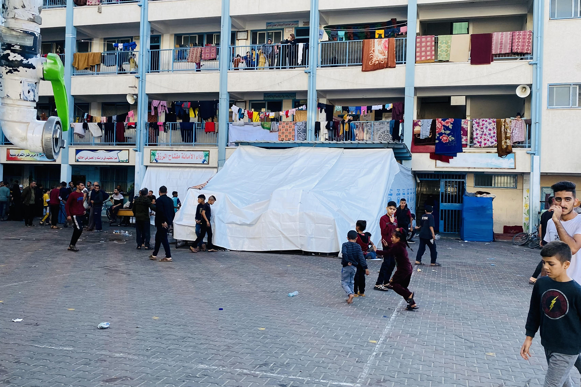 وكأبي زكريا تساءلت سماح “وين بدنا نروح؟”، وتابعت “لا أريد أكل أو شرب، أريد الأمن لأطفالي”، ولولا أن نازحا بالمدرسة استضافها في غرفة تؤوي زوجته وأطفاله، لوجدت نفسها بالشارع بلا مأوى، لقد أرادت سماح مدرسة تابعة لهذه المنظمة الدولية ظنا منها أنها أكثر أمنا من غيرها.