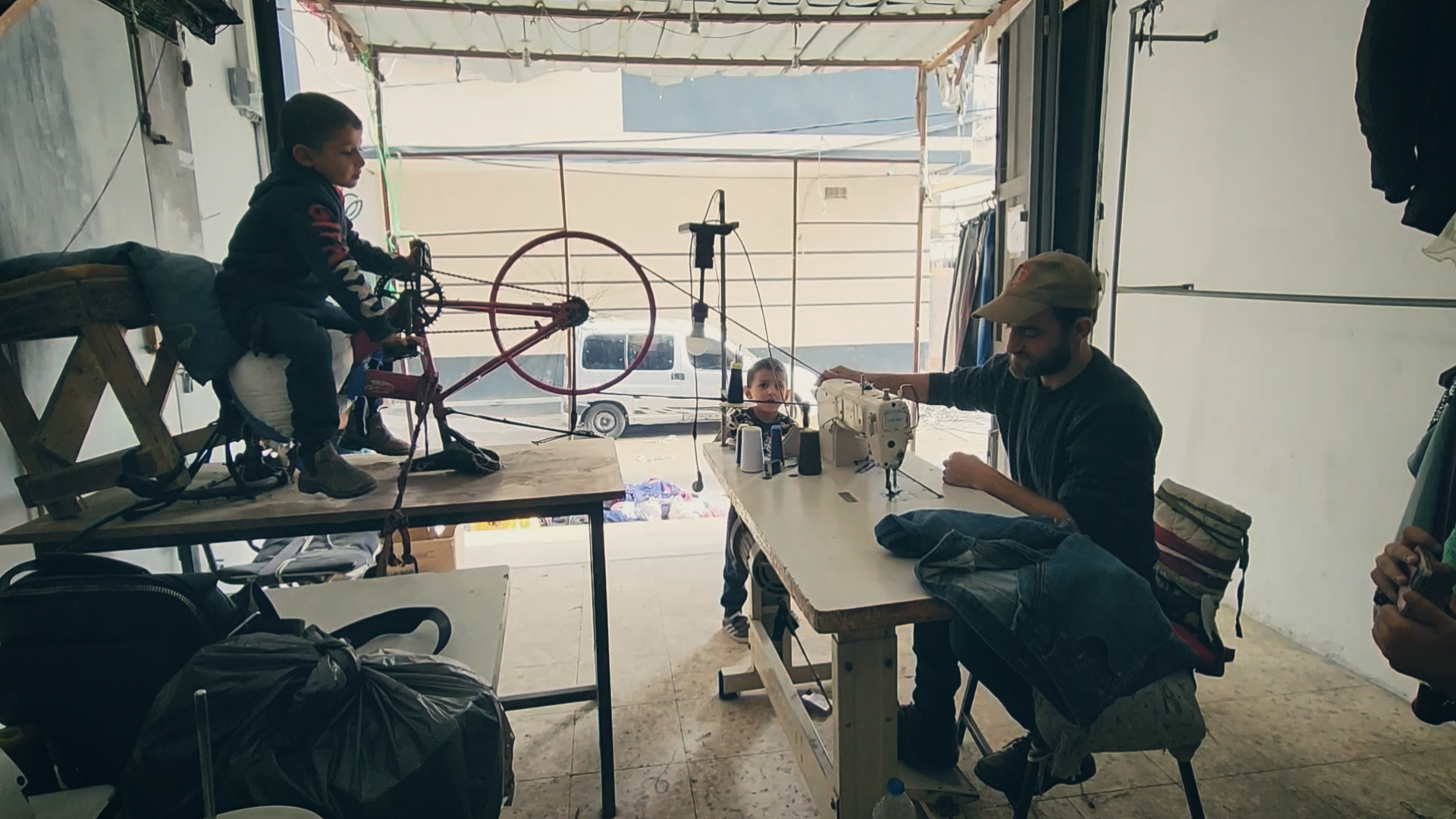 تعطّل عمل صالحة (46 عاما) وهو خياط من مدينة رفح جنوب القطاع، خلال الأيام الأربعة الأولى من العدوان، قبل أن يهتدي إلى فكرة الطاقة الحركية بواسطة تدوير دراجة هوائية، لتشغيل ماكينة الخياطة.