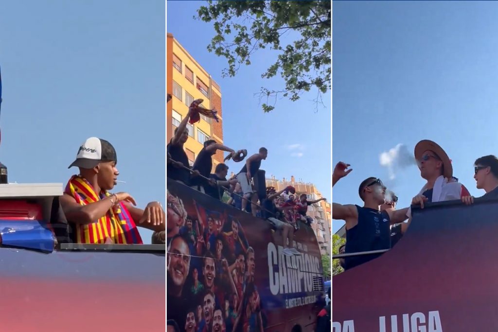 Lamine Yamal metió BAILECITO en pleno Parade del Barcelona campeón de #LaLigaxESPN… ¡No se separa de Raphinha la Joya Culé!pic.twitter.com/rVi7vncejy