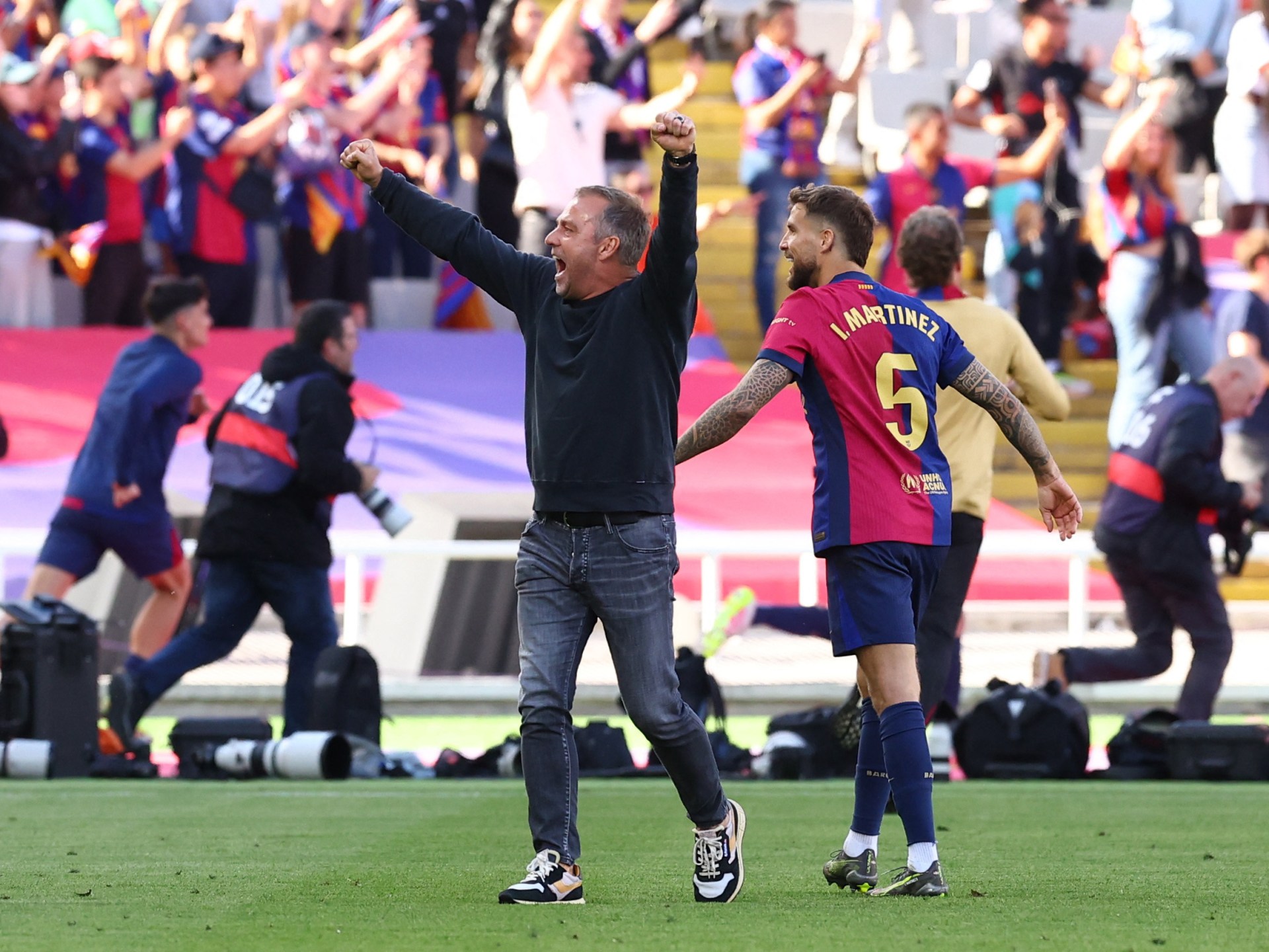 وتوج برشلونة بلقب الدوري الإسباني رسميا يوم الخميس الماضي، عقب فوزه على جاره اللدود إسبانيول في ديربي كتالونيا بنتيجة 2-0 في الجولة الـ36 من الليغا.