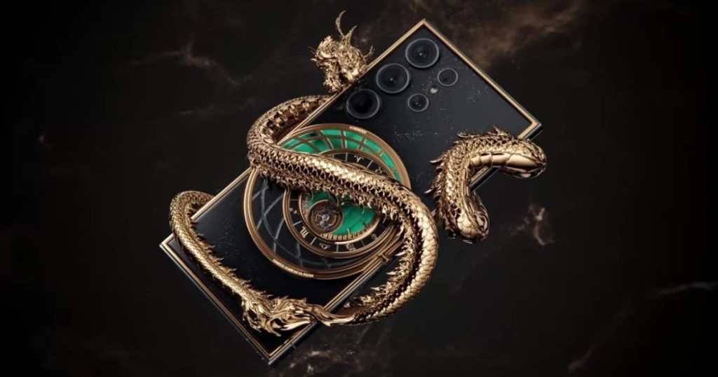 أعلنت شركة كافيار عن إطلاق الهاتف الذكي سامسونغ غالاكسي إس 24 ألترا الجديد ضمن التشكيلة الفاخرة إيرا أوف دراغون، ويأتي الهاتف بتصميم لافت للأنظار، ويشتمل على ساعة ميكانيكية على الجانب الخلفي، بحسب ما ذكرته وكالة الأنباء الألمانية.