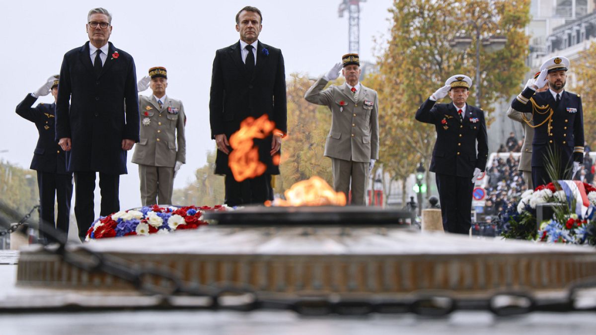 حضر رئيس الوزراء البريطاني كير ستارمر والرئيس الفرنسي إيمانويل ماكرون، وكلاهما زعيما الدول المسلحة نوويا، حفلا أقيم في قوس النصر الشهير في باريس، حيث وضعت أكاليل الزهور تحت ضوء حليبي وومضت الشعلة الأبدية تكريما للجنود الفرنسيين المجهولين الذين لقوا حتفهم. في الصراع العالمي الأول. وقتلت تلك الحرب ما يقرب من 10 ملايين جندي.