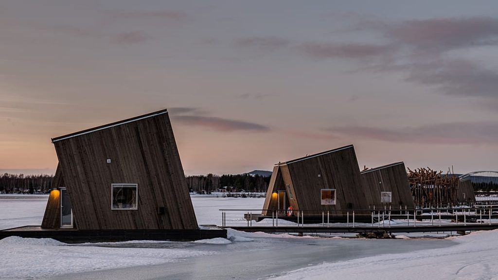 فندق Arctic Bath Hotel المذهل عبارة عن دائري عائم ساونا ومنتجع صحي يرسو على نهر لولي في السويد.