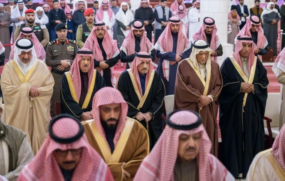 The Prince of Riyadh, Prince Faisal bin Bandar bin Abdulaziz, performed the funeral prayer today (Tuesday) after the Asr prayer for the mother of Prince Shaqran bin Saud bin Abdulaziz (may Allah have mercy on them), at Imam Turki bin Abdullah Mosque in Riyadh.