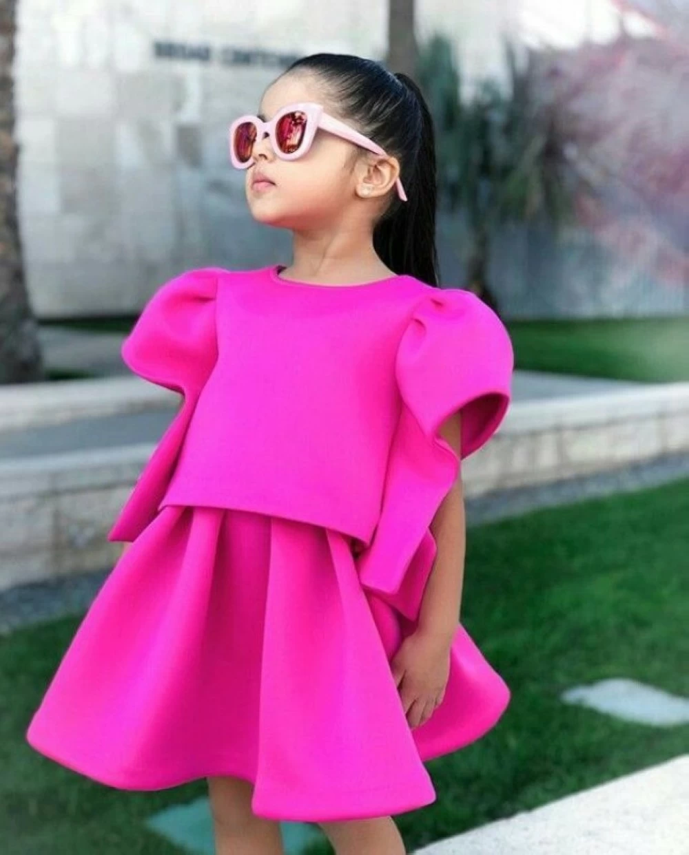 This season, the fashion for little girls’ dresses is leaning towards vibrant colors, clearly reflecting the energetic and playful spirit of childhood. Bright shades like hot pink, sunny yellow, lively green, and clear blue have made a strong appearance on fashion runways and store displays, giving the looks a lively and cheerful character.