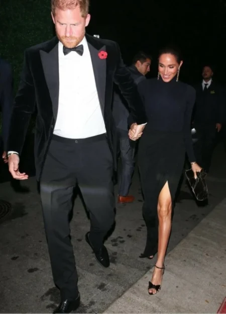 The dress is fully adorned with dark-colored crystal stones and sequins, and its harmony with the exquisite jewelry gave it a luxurious and balanced appearance. The personal modifications to the design added a distinctive touch while maintaining the dress’s elegance and allure.