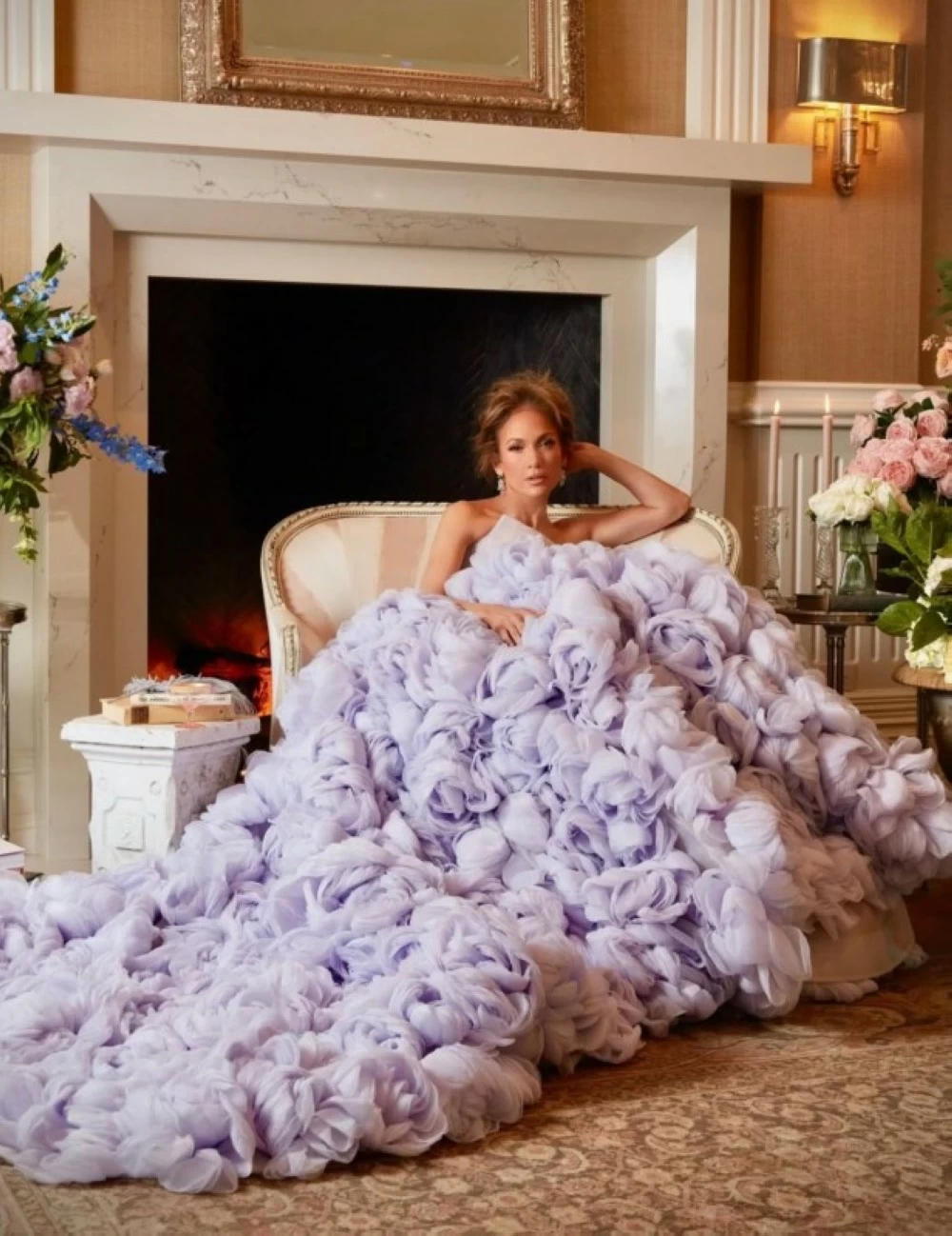 أطلت الممثلة الأمريكية جينيفر لوبيز بفستان ليلكي أنيق، لفت الأنظار بتصميمه المزدان بتطريزات زهرية كبيرة وبارزة غطّت أجزاء واسعة من الفستان، في استلهام واضح من الأجواء الرومانسية الكلاسيكية التي اشتهر بها مسلسل Bridgerton. التصميم جاء بروح حالمة تجمع بين الفخامة الأرستقراطية والأنوثة الناعمة، مع لمسة معاصرة تعكس هوية لوبيز الجريئة وقدرتها الدائمة على إعادة تقديم الأساليب الكلاسيكية بأسلوب حديث.