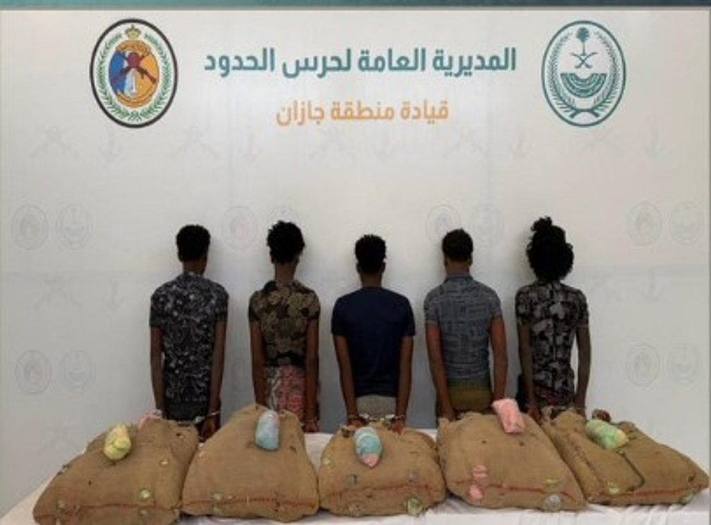قبضت الدوريات البرية لحرس الحدود في قطاع الدائر بمنطقة جازان على (5) مخالفين لنظام أمن الحدود من الجنسية الإثيوبية، لتهريبهم (100) كيلوجرام من نبات القات المخدر.