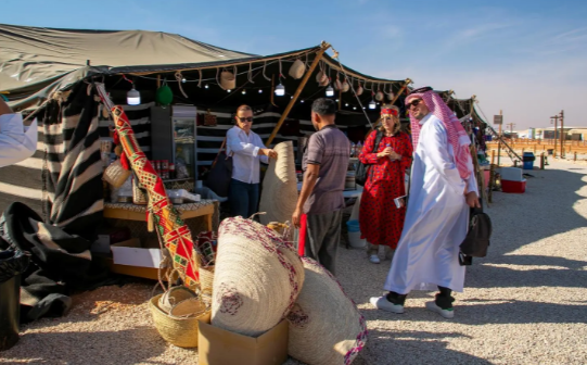 كما شاهد السياح خلال جولتهم، بسوق الملبوسات الشعبية “الجلابيات، والبرقع النجدي، والخلخال”، وأدوات تزيين الكفين والرأس والملابس الشتوية كالفروة وغطاء الرأس، ولبس الشماغ والثوب السعودي للرجال والفروة، وبيوت الشعر التي تحتوي على مشاركات وطنية كخيمة الصقور، وكذلك السوق الشعبي وما يحتويه من استخدامات في البيوت قديما.