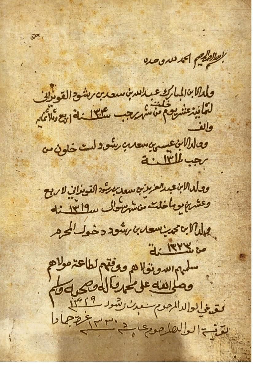 أظهرت صور متداولة جانبًا من مخطوطات فلكية قديمة تعود لأحد أبناء محافظة الحريق، هو عبد الله بن سعد بن رشود القويزاني -رحمه الله- الذي عُرف باهتمامه بالحسابات الفلكية ورصد النجوم وساعات الليل والنهار وفصول السنة.