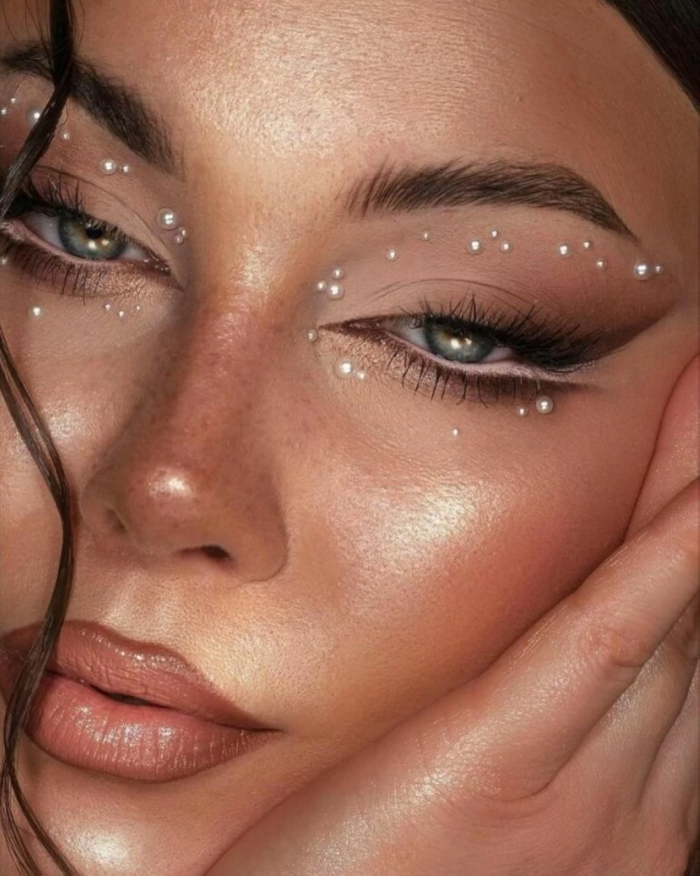 Applying crystal makeup requires precise technique and a high sense of balance. The foundation is always a polished and calm complexion, as crystal is a visually powerful element that cannot compete with other details. The placement of crystals is chosen carefully, such as on the outer corner of the eye, under the brow, on the cheekbone, or in precise dots mimicking tears or stars, while avoiding random distribution that could detract from the look’s elegance. The crystals are secured using a makeup adhesive to ensure longevity without affecting the comfort or safety of the skin, taking into account the size and number of stones in relation to the shape of the eyes and face.