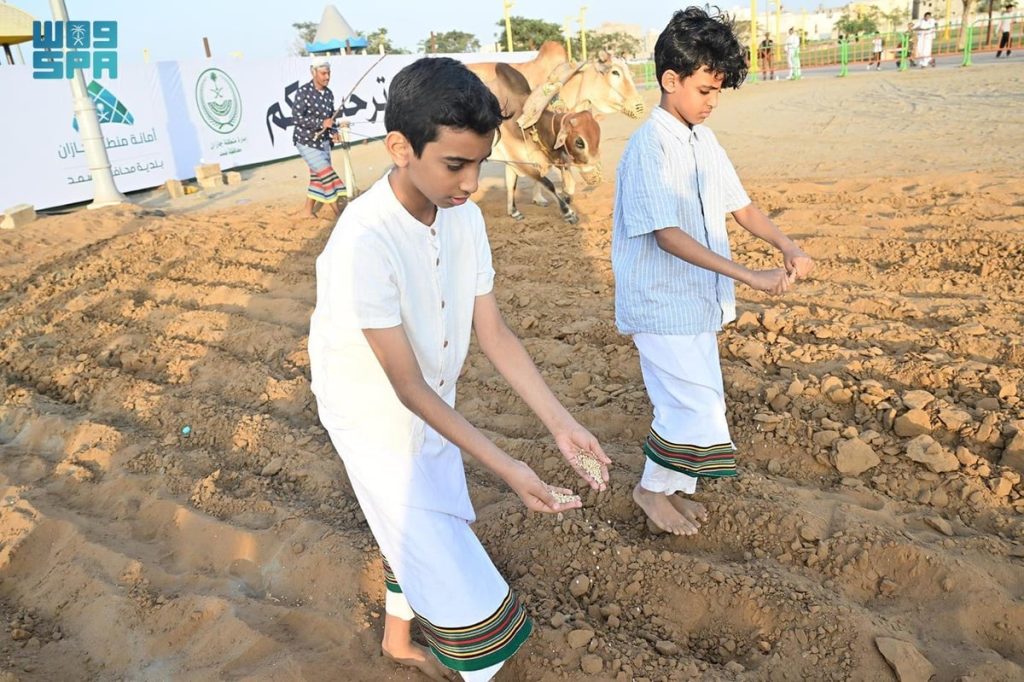 شدّت عروض الحرث بالثيران -التي كانت قديماً تعد من المهن وتدر دخلاً على أصحابها-، انتباه زوار فعاليات مهرجان “عذق 4 ” للذرة الرفيعة والنباتات العطرية ، المقام حالياً بالحديقة العامة بضمد.